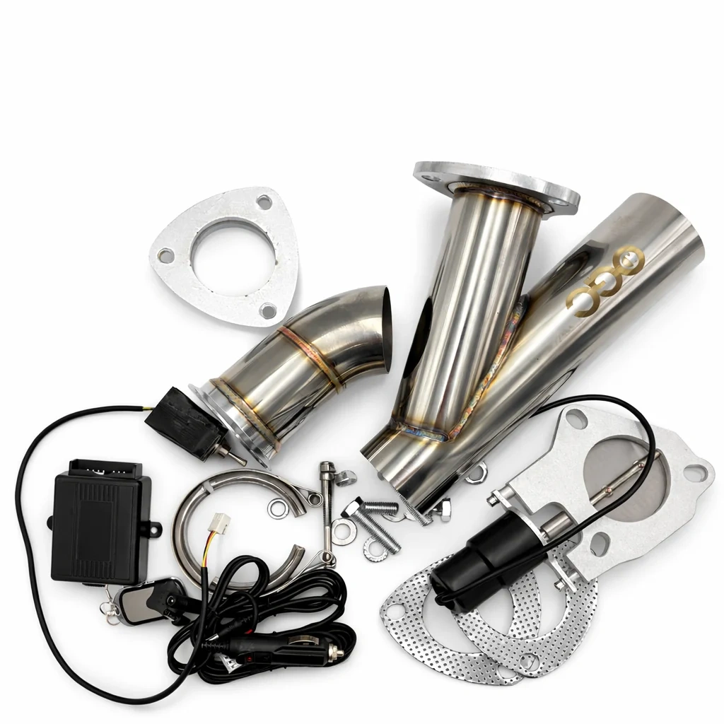 Elektryczna przepustnica wydechu umożliwiająca regulację przepływu spalin w układach wydechowych, w zestawie z Y-pipe, pilotem oraz przełącznikiem .