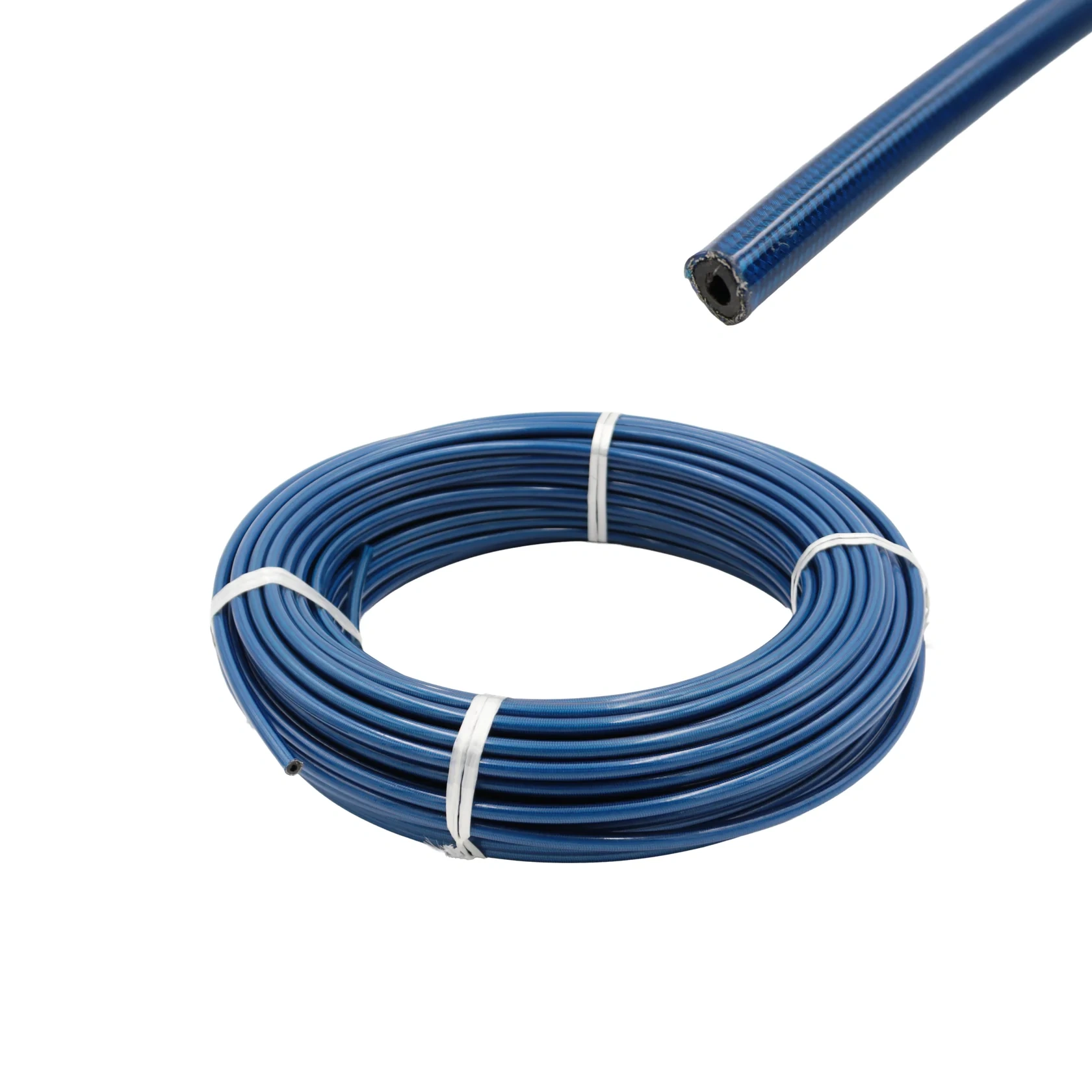Sportowy przewód hamulcowy w standardzie AN3 wykonany z nylonu, zbrojenie ze stali nierdzewnej w oplocie PVC.