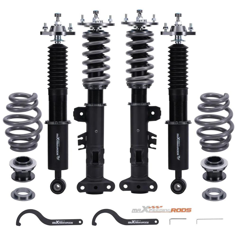 Kompletny zestaw zawieszenia gwintowanego przeznaczony do modeli BMW serii 3 generacji E36. Zestaw umożliwia niezależną regulację twardości (24-stopniową) oraz wysokości pojazdu, co pozwala na idealne dopasowanie zawieszenia do codziennej jazdy lub sportowego użytku. Konstrukcja typu Twin-Tube oraz sportowy olej zapewnia wytrzymałość i precyzje na każdej nawierzchni. Posiada zintegrowany dla przedniej osi CAMBER PLATE oraz aluminiowe tylne mocowania amortyzatorów.
